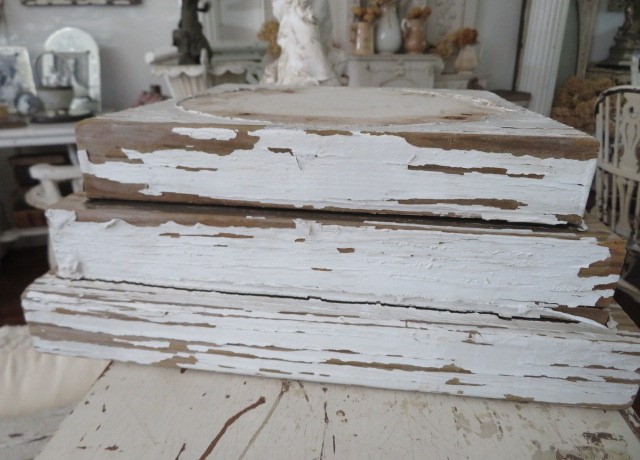 This is a wood salvaged column base or top . The square ones are so hard to find. It is wood and has the old white paint that is chippy, with paint loss, some old cracks, but very solid, minor dirt, and wear. The top was touched up with paint.