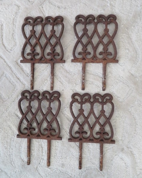 4 AWESOME Vintage Cast Iron Metal GARDEN FENCE STAKES Rusty Patina