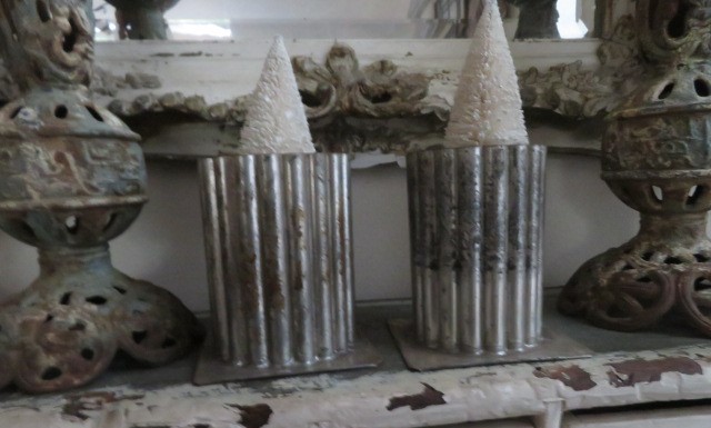 2 Old Vintage Metal FLUTED CANDLE MOLD Molds Holders Awesome Patina