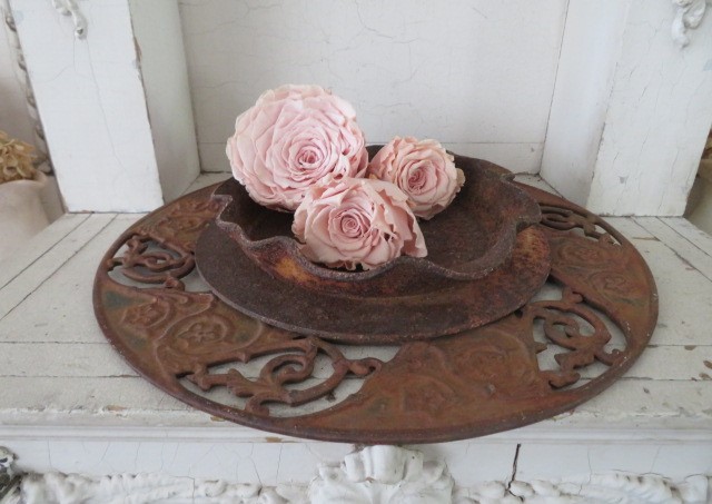 Both are mostly all rusty. You could use them as I show, or two separate pieces. SORRY, THE IRONSTONE AND ROSES ARE NOT INCLUDED.
