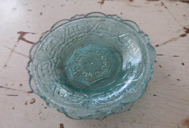 THESE ARE THREE VINTAGE GLASS BUTTER PATS OR BUTTER DISHES THAT HAVE SCALLOPED EDGES AND GORGEOUS DETAILS.