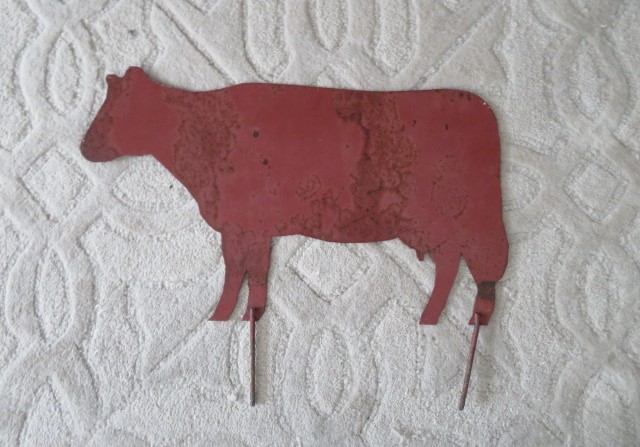 THIS IS AN OLD METAL COW GARDEN STAKE IN A NICE LARGE SIZE THAT WOULD BE AMAZING REPURPOSED AS COUNTRY FARMHOUSE WALL DECOR IN YOUR HOME.