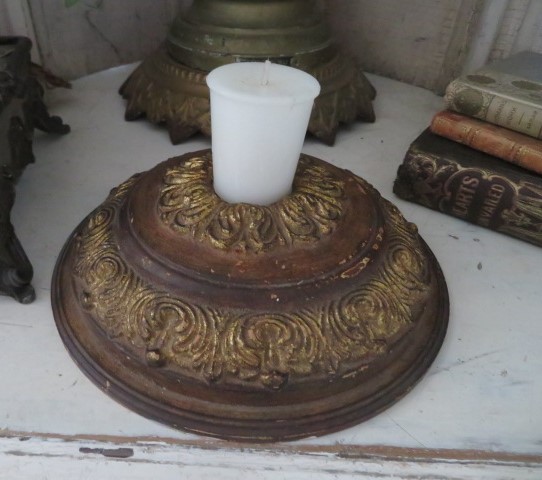 THIS IS AN OLD ANTIQUE VINTAGE FRENCH CAST IRON METAL ORNATE BASE THAT CAN BE REPURPOSED AS A CANDLE HOLDER OR DECOR PIECE.