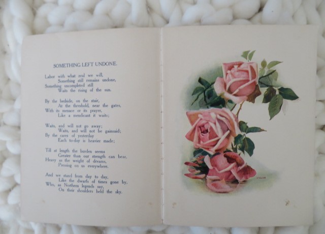 THIS IS AN OLD INSPIRATIONAL MOTTO BOOK CALLED GREETINGS FROM LONGFELLOW, COPYRIGHT 1907 BY CUPPLES & LEON CO, NEW YORK.