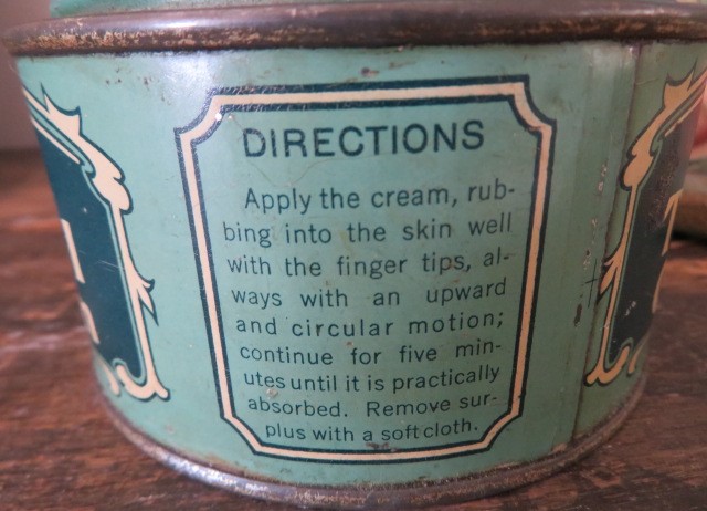 THIS IS AN OLDER EMPTY ADVERTISING TIN CAN WITH LID FOR LYON'S THEATRICAL COLD CREAM WITH GREAT COLORS.