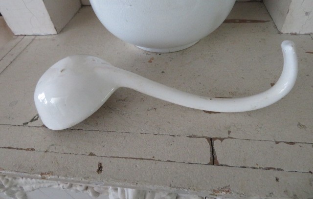 If you are missing a ladle to one of your ironstone pieces, this might work for you. Or, you can display it hanging from a pitcher or just lying down. I show it with a little salvaged bird, that I will include.There is minor staining, minor crazing, minor dirt and wear.