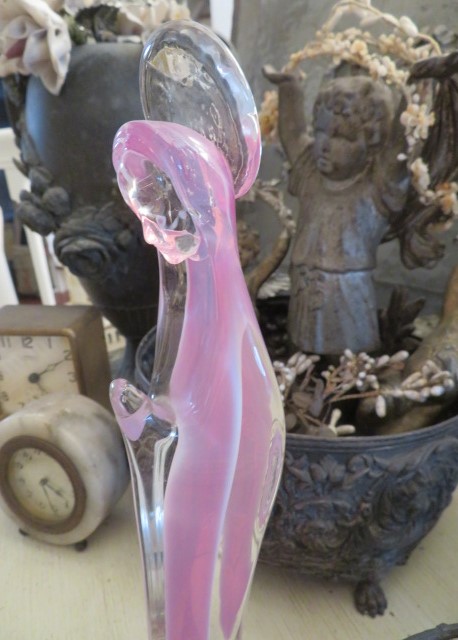 THIS IS A BEAUTIFUL VINTAGE MURANO VENTIAN VETRERIA ARTISTICA OBALL MADONNA GLASS SCULPTURE STATUE WITH HALO IN HARD TO FIND PINK AND CLEAR GLASS.