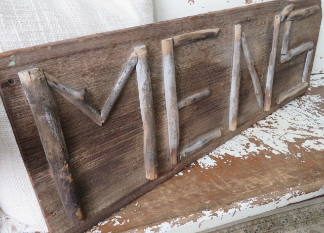 THIS IS AN OLD VINTAGE WOODEN SIGN, THAT SAYS "MEN'S" WITH DRIFTWOOD OR TWIGS SPELLING OUT THE LETTERS.